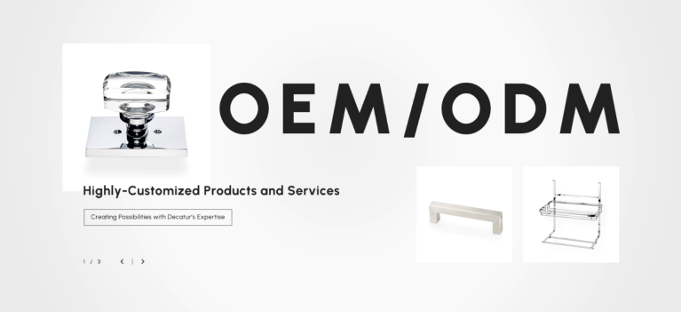 Decatur es un proveedor de herrajes para muebles con sede en Taiwán. Nuestra máxima prioridad es garantizar la satisfacción del cliente. Mantenemos asociaciones a largo plazo con clientes de todo el mundo y ofrecemos servicios de personalización integrados para satisfacer sus necesidades.